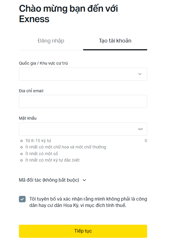 Mở tài khoản Exness là bước đầu tiên quan trọng để bạn có thể bắt đầu giao dịch trên sàn này. Hãy làm theo các bước dưới đây để đảm bảo quá trình đăng ký và xác minh tài khoản diễn ra một cách suôn sẻ: